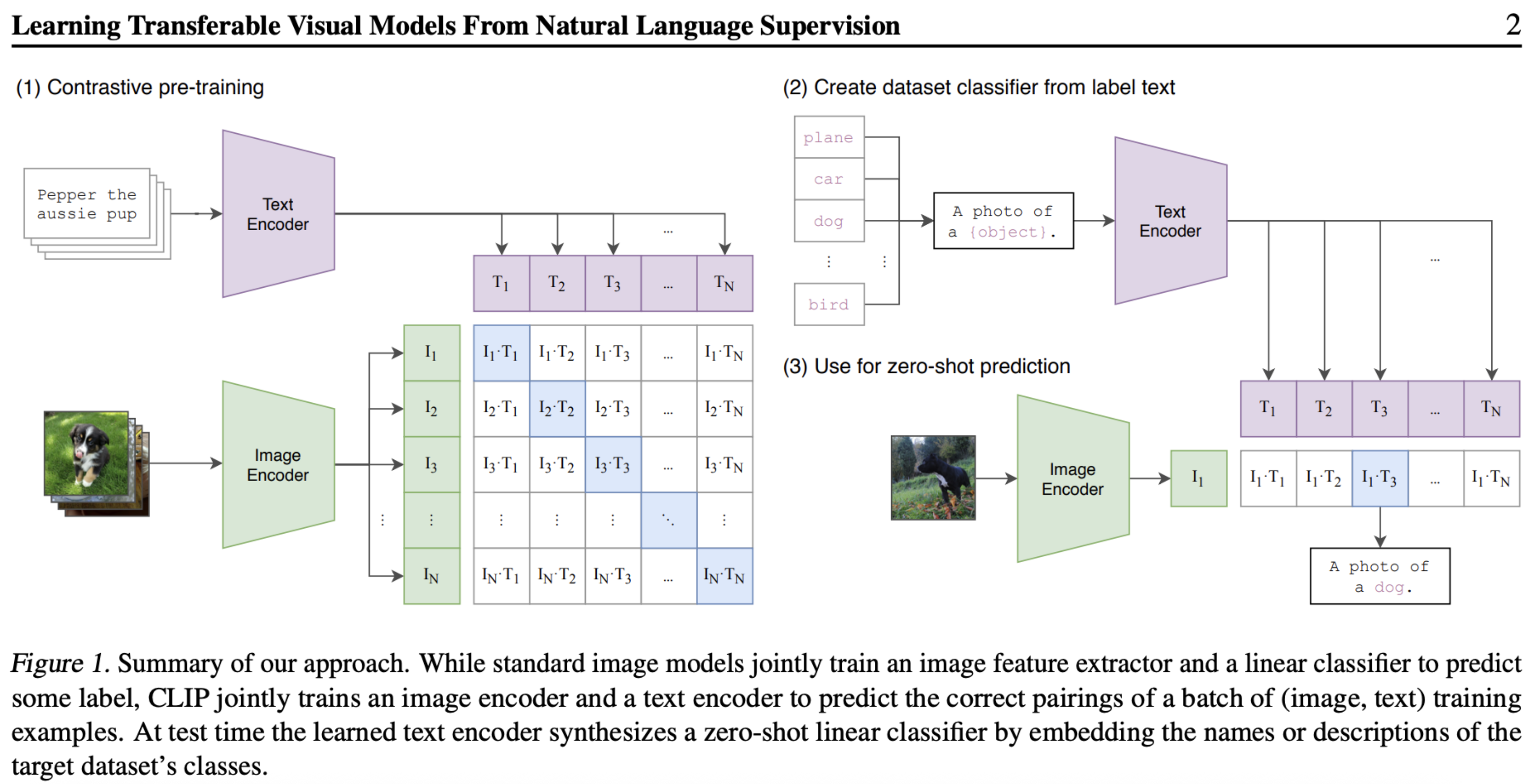 In inference, it calculates the similarity scores between the vector of a single image with a bunch of possible caption vectors, and picks the caption with the highest similarity.
