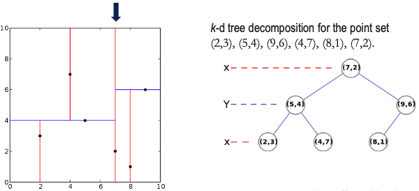 - k-dimensional tree is a space-partitioning data structure for organizing points in a k-dimensional space