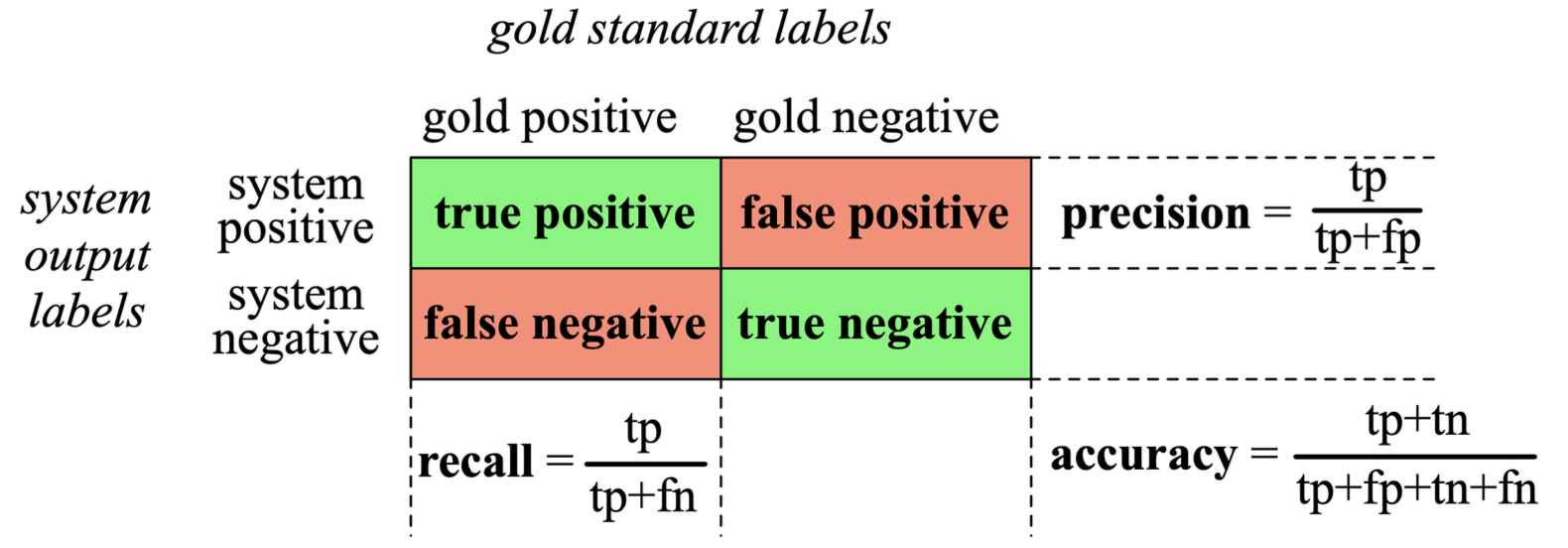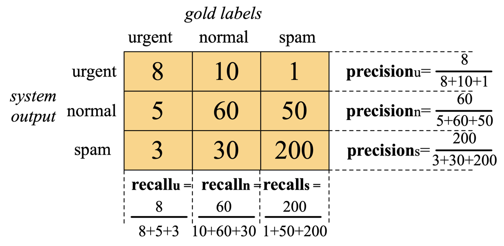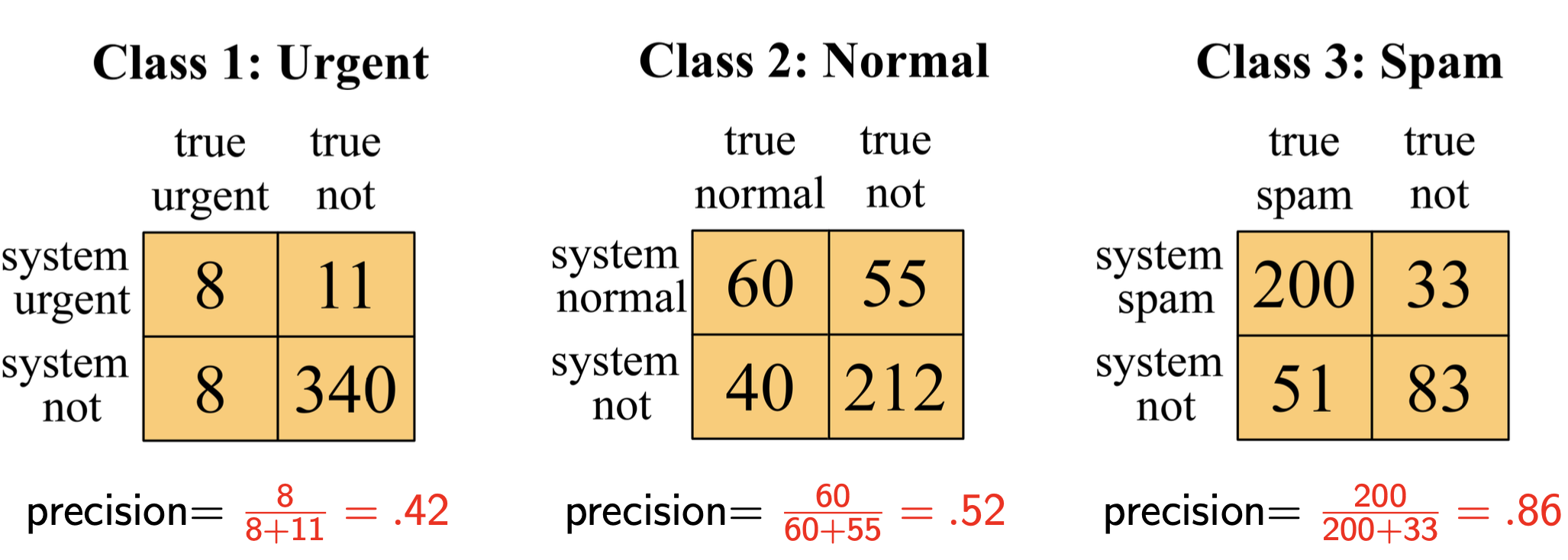 Confusion matrix for a three-class categorization task, showing for each pair of classes (c1,c2), how many documents from c1 were (in)correctly assigned to c2.