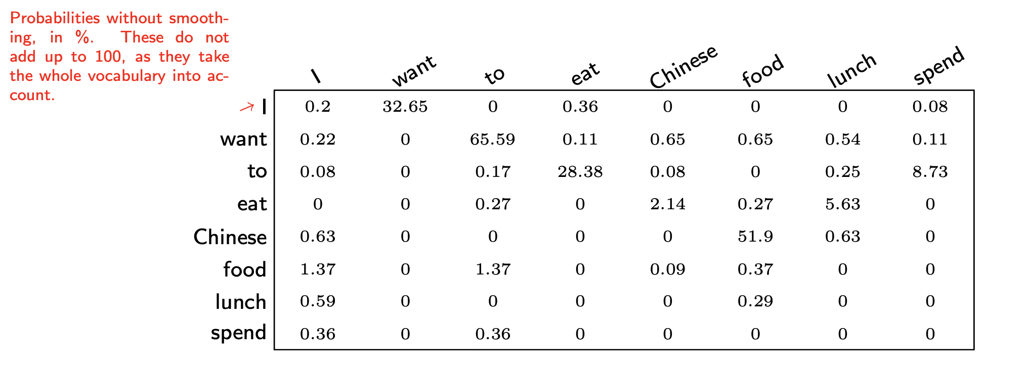 - p(in | Please turn your homework) > p(the | Please turn your homework)