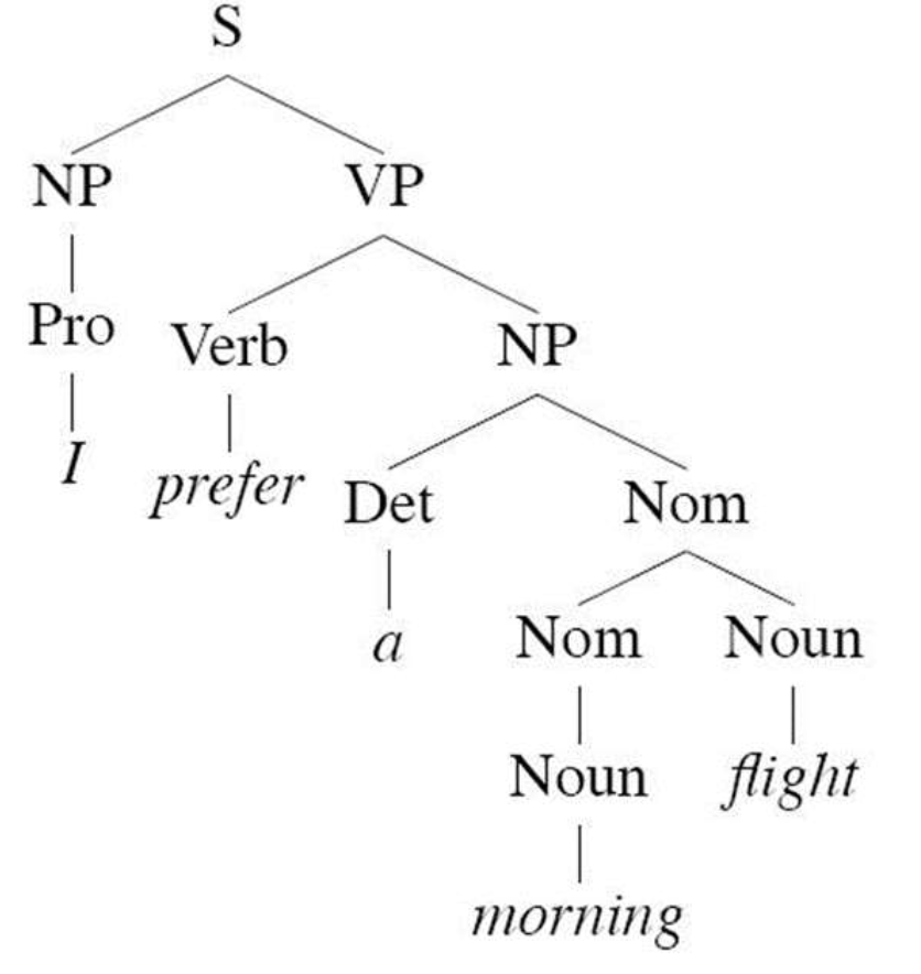 Parsing is the process of taking a string and a grammar and returning a parse tree (or multiple parse trees) for that string according to that grammar. More on that in Constituency Parsing