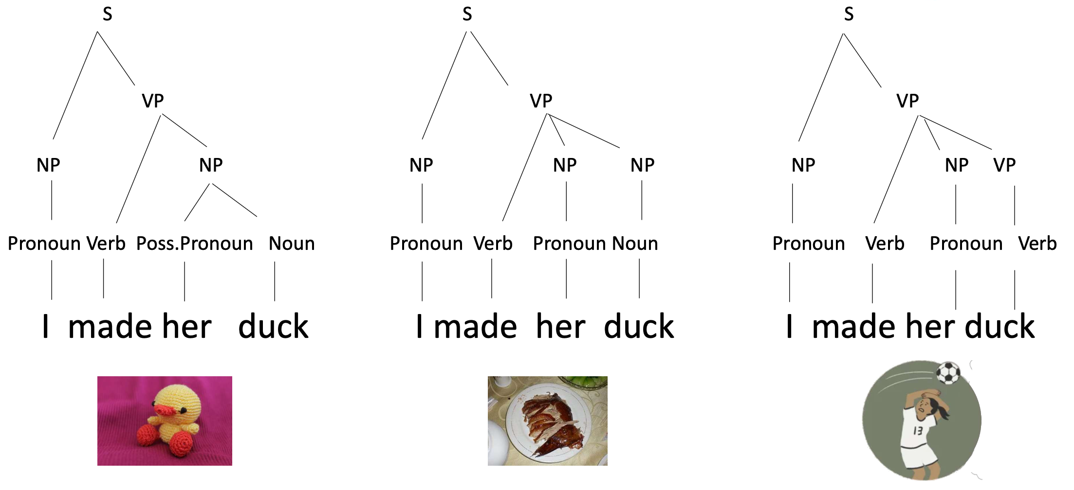 NP (“young people”) + VP (“sleep” + NP “furious people”) (odd semantically, but allowed syntactically)