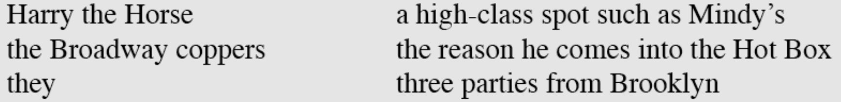 NP (“green ideas”) + VP (“sleep” + Adv “furiously”)