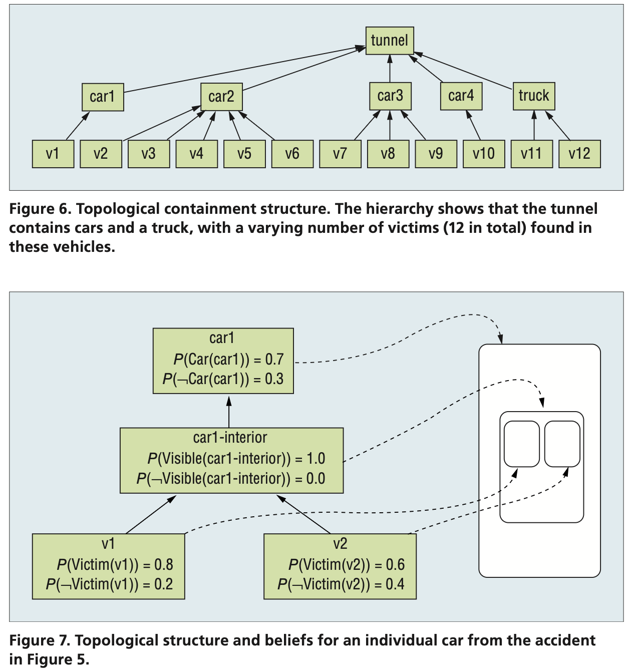 Their approach to modeling situational awareness for robots makes it possible for an individual robot to comprehend and reason with distributed situational awareness. This conceptual approach establishes a link between probabilistic representations of experience and logical representations of domain knowledge. The latter make it possible to infer properties, available actions, and possible consequences. By modeling the inferences as beliefs, they can be attributed to any number of team members, both robot and human. Linking the beliefs to experience makes it possible to place them into time and space and suitably restrict them to what is actually possible.