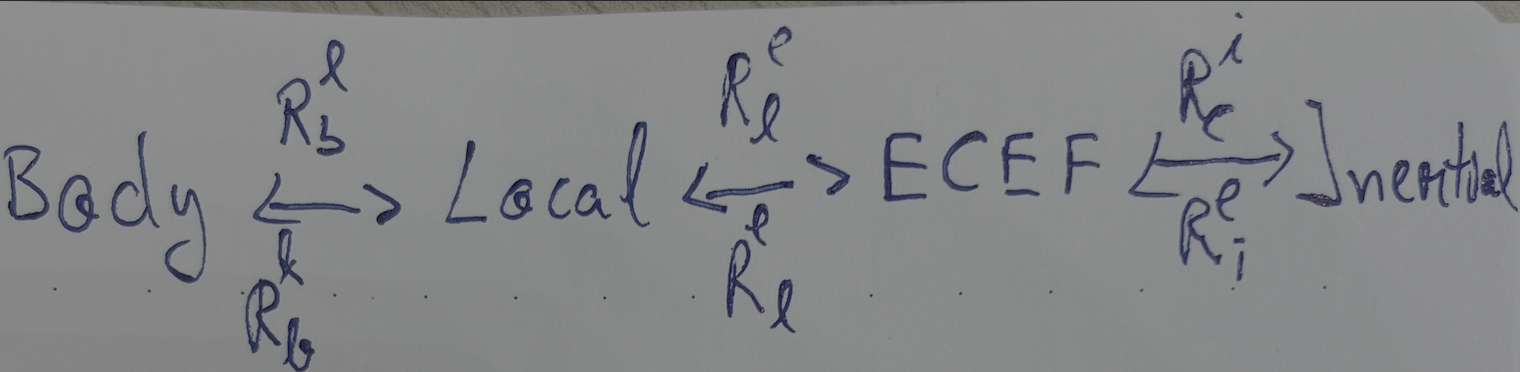 Frame indices: i (inertial), e (ECEF), l (local), b (body).