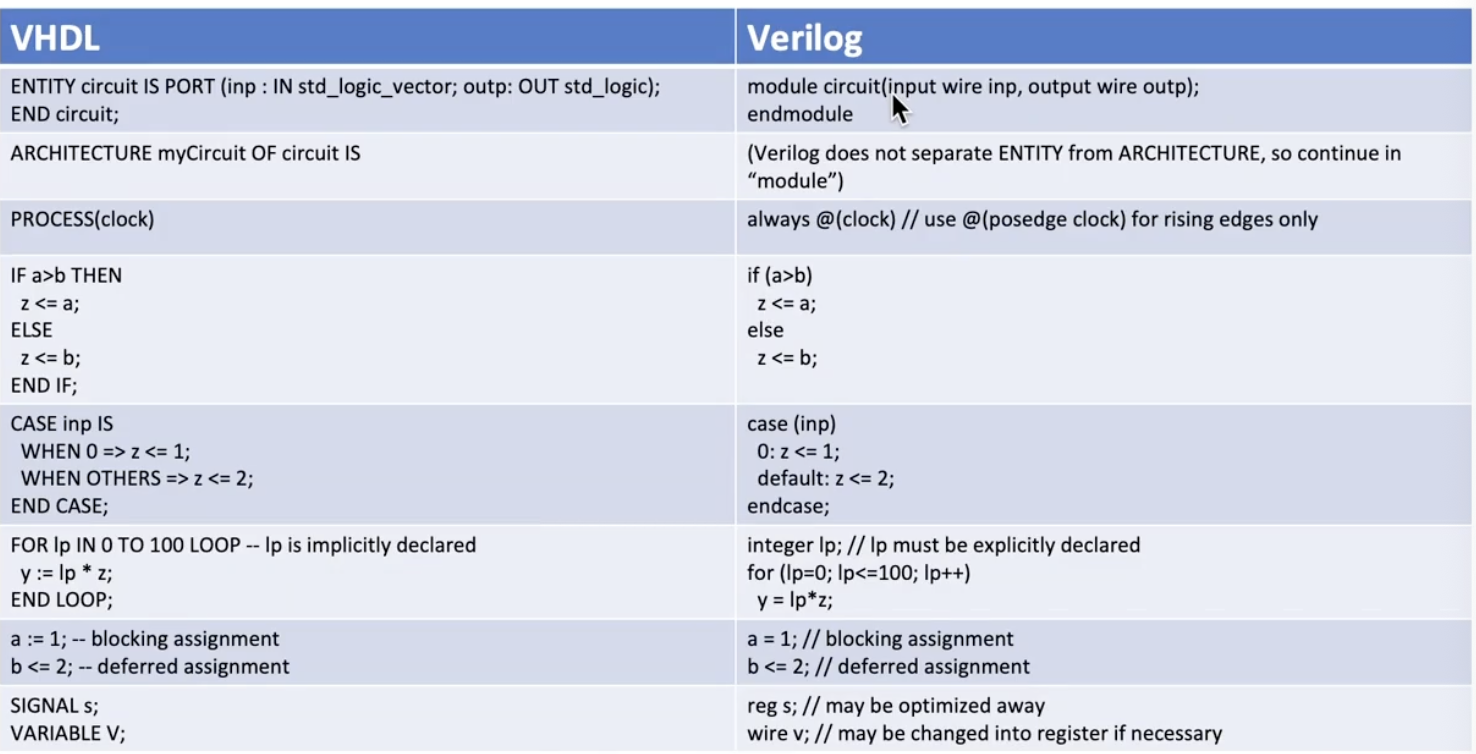 Some specifics in Verilog: