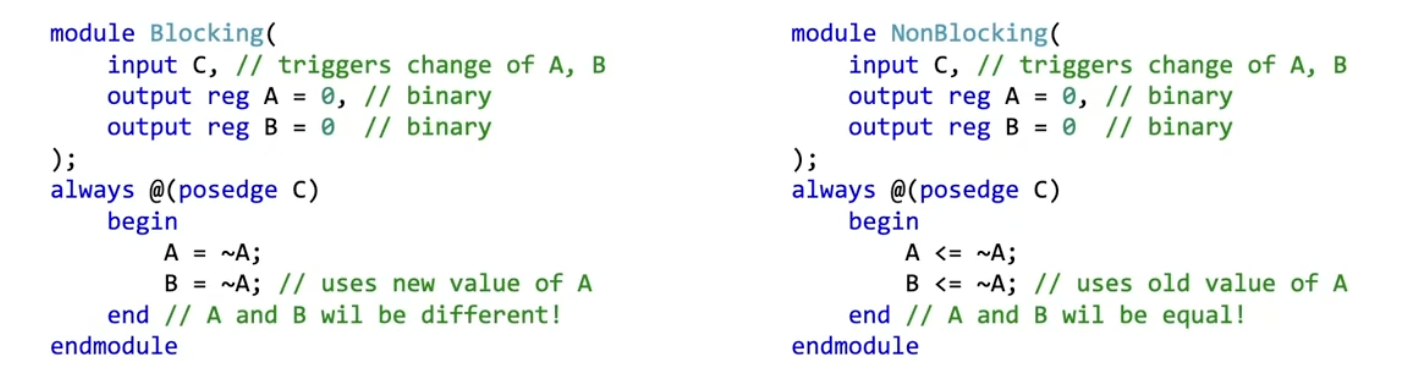 <=non-blocking, synchronised on the clock. Order doesn’t matter!