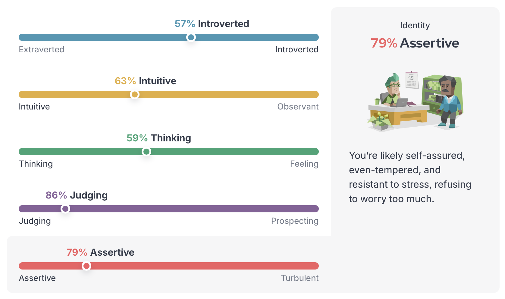 I am leaning 7% in the introverted side. Basically that’s the difference to ENTJ. But at the same time, I like it. Why? Because I am able to step down if someone more fit comes around while ofc building myself up to take the top spot again. I also like it because I keep a certain distance to people I work with. I like drawing a line between personal and professional lives.