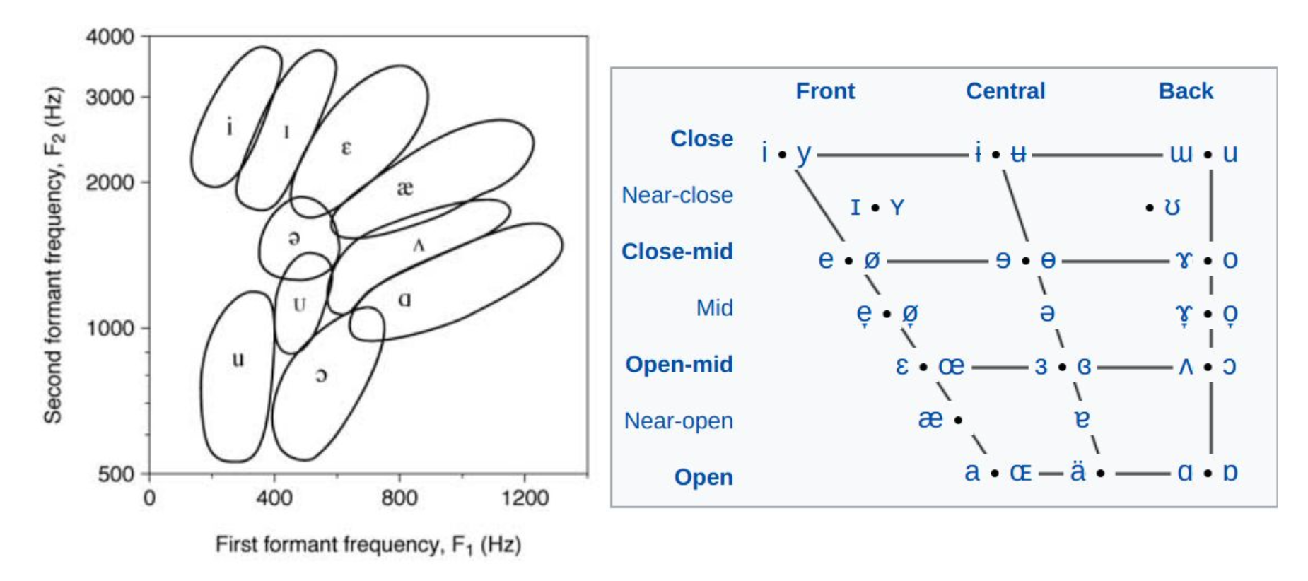 F1-F2 chart has good correlation with vowel chart.