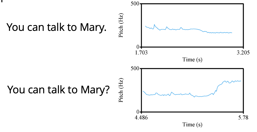 - pitch, rythm, intonation, emotion,
