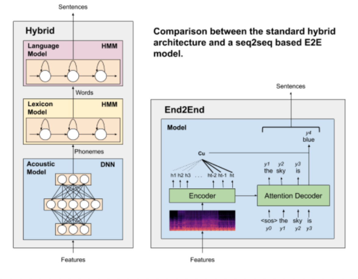 - E2E models simplify the training pipeline (only some pre-/post-processing required)