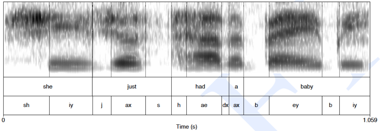 - Typically used for training acoustic models: which parts of the audio belong to a word or even a phone