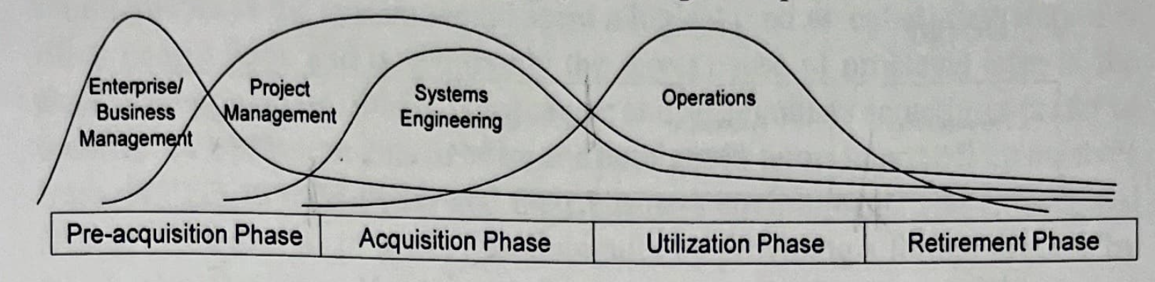 As illustrated in the Figure above, systems engineering is predominantly related to the Acquisition Phase and, to a lesser extent, the Utilization Phase of the system life cycle.
