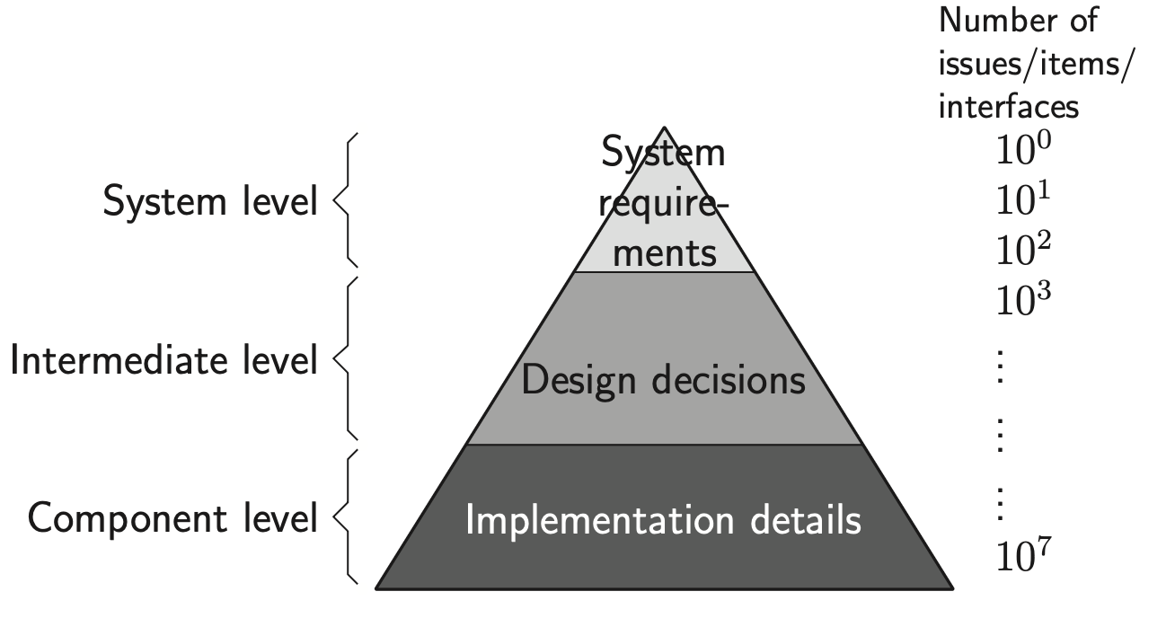 The Muller Pyramid shows how for a complex system (like an ASML wafer scanner), the number of issues explodes from the analysis of initial customer need to development of engineering details.