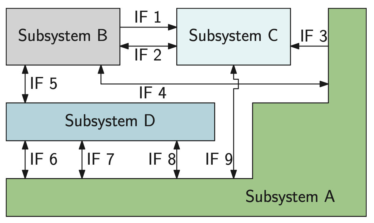 All cooperation between the subsystems has to be made explicit by the interfaces. Investigating the interfaces is the core business of a system designer.