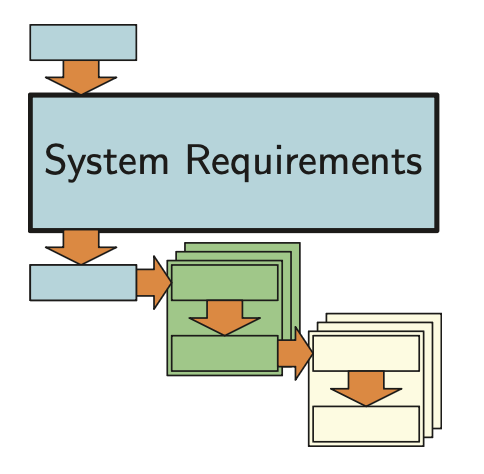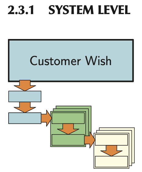Customer Wish and System Requirements correspond to the system level in the pyramid