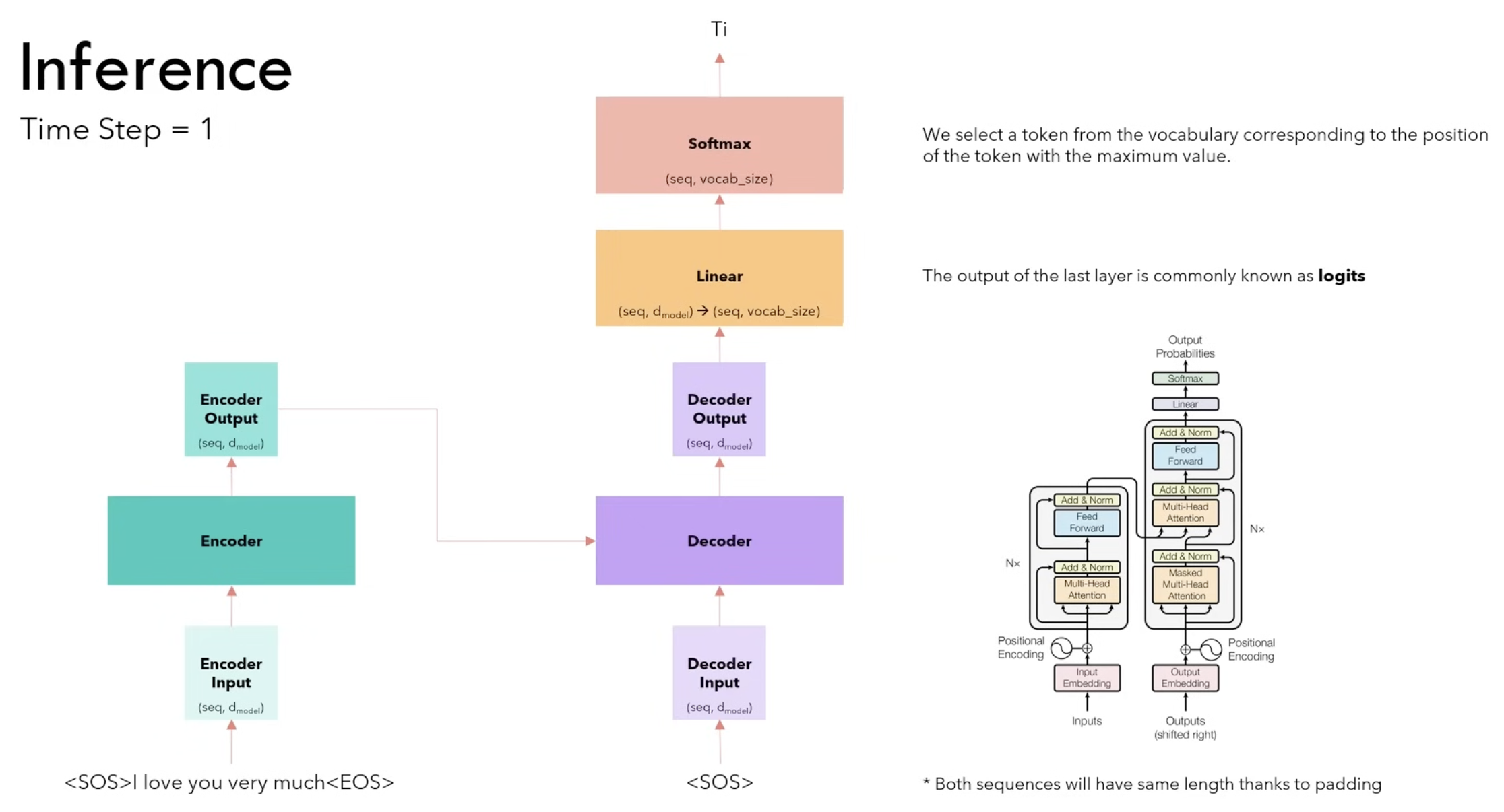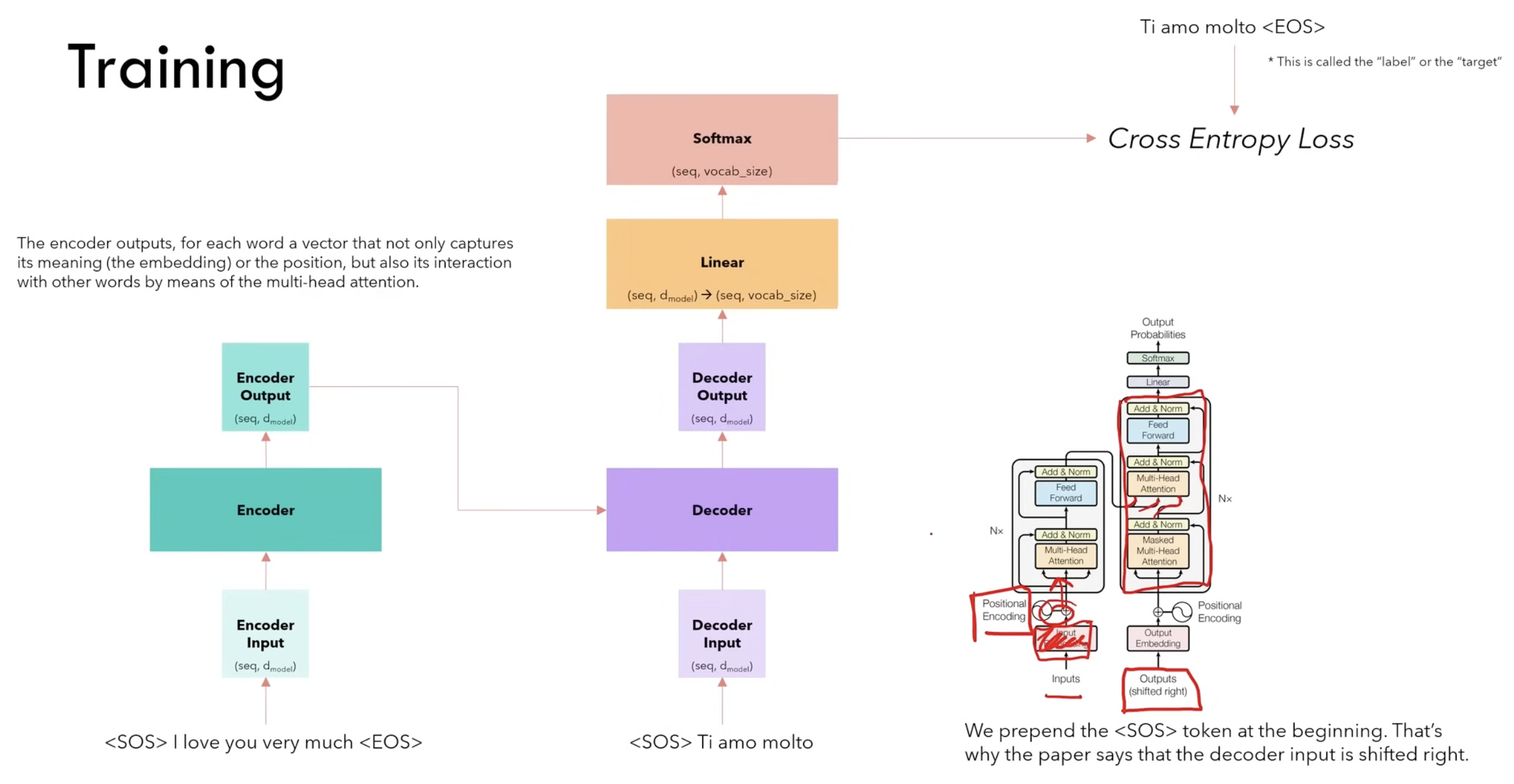 - We can see that in the architecture of the transformer, the input of the decoder says (shifted right). That’s because we add the <SOS> token at the start.