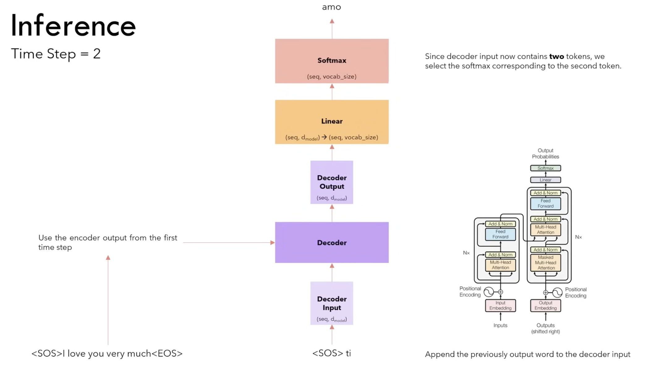 The main difference here is that we predict each token step-by-step. It doesn’t all happen in one time step as in the training process.