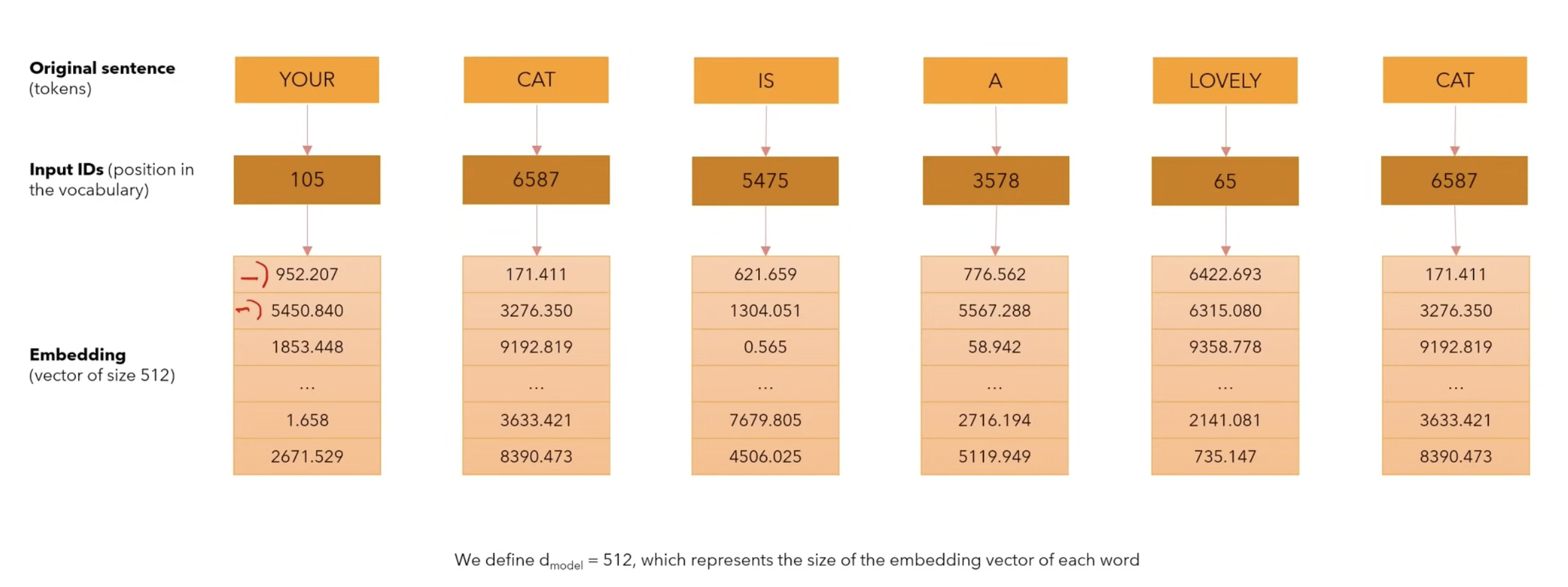- then the tokens are mapped to some unique IDs that represent their position in the vocabulary. This one doesn’t change since the vocabulary is fixed.